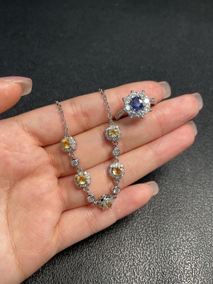 C35121859 Crystal Bracelet + Sapphire Ring (Adjustable, Non-Gold) Total Weight Approx. 7.54g Sell as a Lot