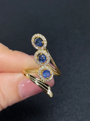 C40684322 Sapphire inlaid ring, non-gold inlaid, adjustable, total weight about 7.22g