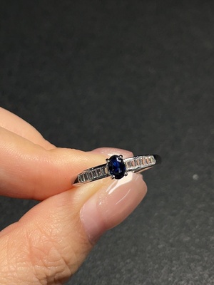 C34008887 Sapphire Ring (Color origin undetermined, No hallmark, Surface-tested gold content 18K, Non-diamond, Total weight approx. 1.63g, Size 12.5, Stone 6.2*3.9mm)