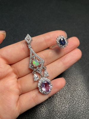 C36275074 Sapphire Ring + Opal with Crystal Pendant Non-Gold Total Weight Approx. 8.23g Sell as a Lot