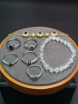 C34951844 Crystal + Garnet + Red Agate + Sapphire + Topaz (Color origin undetermined) + Amber & Beeswax (Coated with colorless film) Jewelry (Non-gold) Total weight approx. 44.95g
