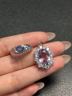 C28185465 Sapphire Pendant + Ring, Color Origin Undetermined, Adjustable Opening, Non-Gold Setting, Total Weight Approx. 3.17g