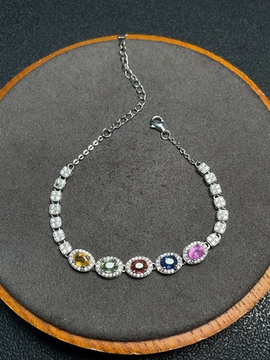 C35097268 Sapphire bracelet, color origin undetermined, non-gold, total weight approx. 3.04g, size approx. 6.1*5.1mm