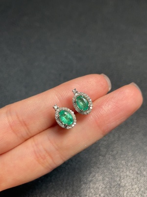 C36274266 Emerald earrings clarity enhanced with diamond accents non-metal total weight approx. 2.43g
