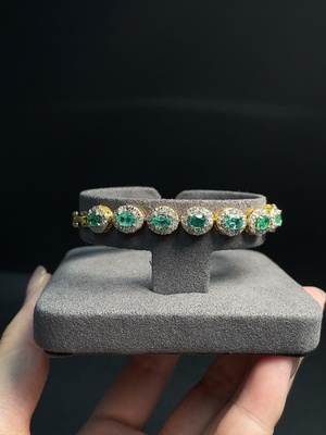C36274265 Emerald Bracelet Clarity Enhanced with Diamond Accents Non-Gold Total Weight Approx. 12.20g