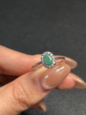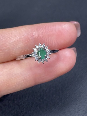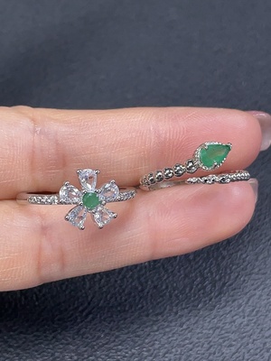 C29382904 Emerald ring, total weight approximately 2.67g, non-gold setting, adjustable, clarity-enhanced