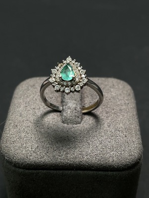 C10017343 Emerald Set Ring Approx. 1.09g Adjustable Size Non-Gold Setting Side Stones Not Tested