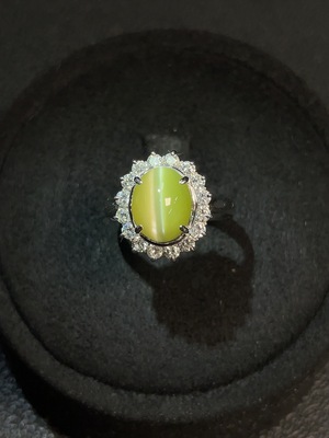 C35096753 Chrysoberyl Cat's Eye Ring PT900 with Diamond Accents, Total Weight Approx. 7.40g, Size 14