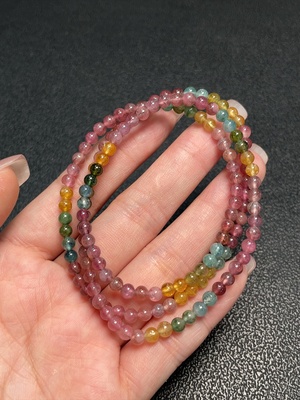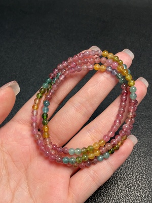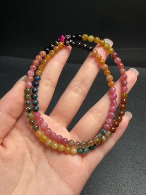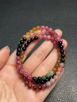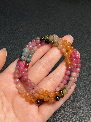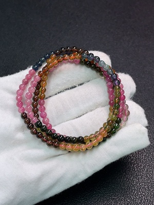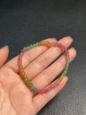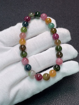 C36239870 Tourmaline bracelet containing other mineral components with visible organic matter, total weight approximately 10.5g, size about 6.1mm
