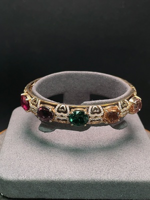 C35093636 18K Tourmaline Bracelet with Diamond Accents, Total Weight Approx. 19.23g, Size Around 9.5*8.2mm