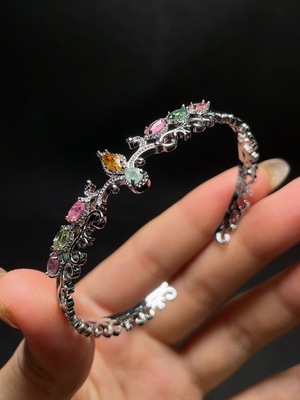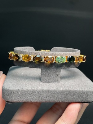 C35202679 Tourmaline Bracelet with Diamond Accents, Non-Gold, Total Weight Approx. 17.4g