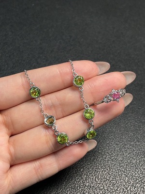 C34066659 Tourmaline Ring + Peridot Bracelet, Visible Organic Matter, Non-Metal, Adjustable Opening, Total Weight Approx. 5.3g, Sell as a Lot