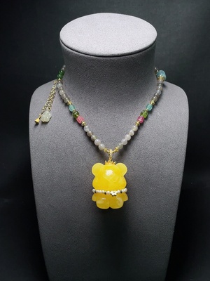 C36229949 Amber Beeswax Pendant with Hetian Jade, Jadeite, Pearl, Tourmaline, Visible Organic Matter, Partial Repair, Non-Gold, Total Weight Approx. 63.9g