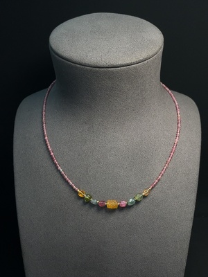 C40705239 Tourmaline Bead Necklace No Hallmark Gold Content Marked in Red as 18K Rest Non-Gold Organic Material Visible Total Weight Approx. 21.87g Bead Size ~4.2mm