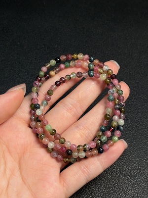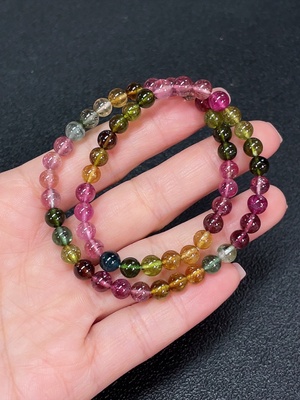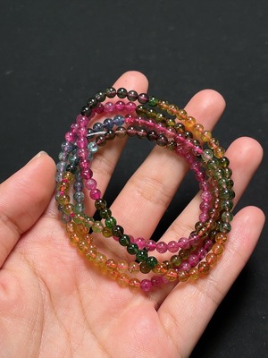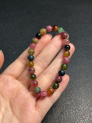 C37409335 Tourmaline bracelet containing other mineral components, visible organic matter, total weight approximately 9.4g, size about 5.8mm