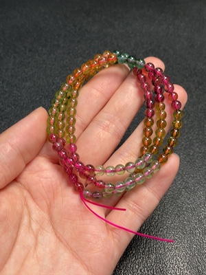 C37385257 Tourmaline bead strand with visible organic matter, total weight approx. 20.53g, size approx. 4.7mm