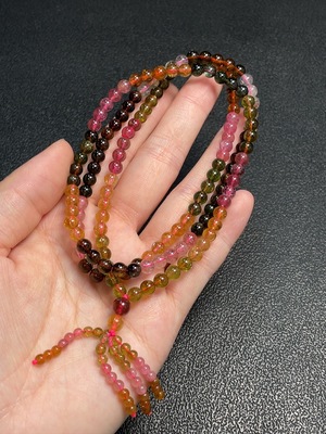 C36229364 Tourmaline bead strand containing other mineral components with visible organic matter, total weight approx. 16.24g, size about 4.3mm