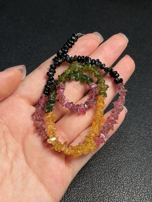 C35123426 Tourmaline bead necklace with visible organic inclusions, total weight approximately 13.95g, bead size about 4mm