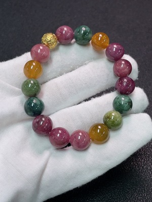 C34037986 Tourmaline bracelet with other mineral components, visible organic matter, non-gold, total weight approximately 33.18g, size about 10.7mm (with impurities)
