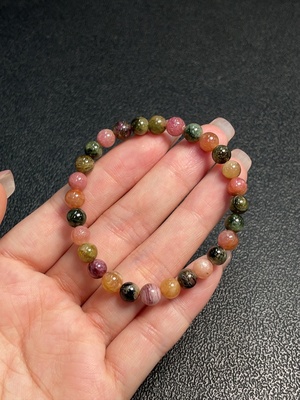 C36239870 Tourmaline bracelet containing other mineral components with visible organic matter, total weight approximately 10.5g, size about 6.1mm