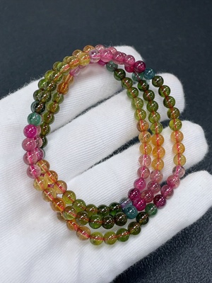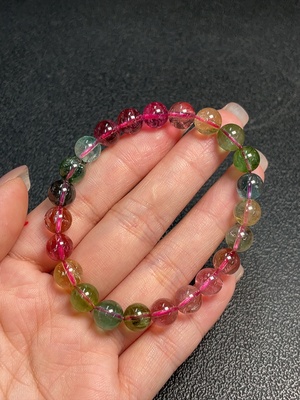 C36242979 Tourmaline Bracelet with Visible Organic Matter, Total Weight Approx. 8.35g, Size 4.2mm, Non-Metal, Stones May Be Non-Natural