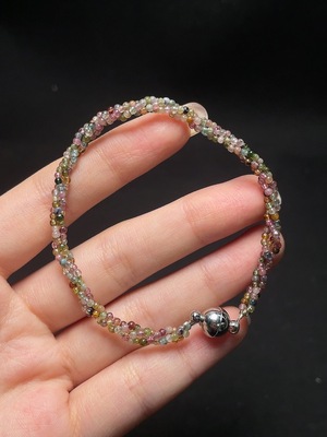 C38500140 Tourmaline Bracelet with Other Mineral Components, Visible Organic Matter, Non-Metal, Total Weight Approx. 5.4g, Size About 1.8mm