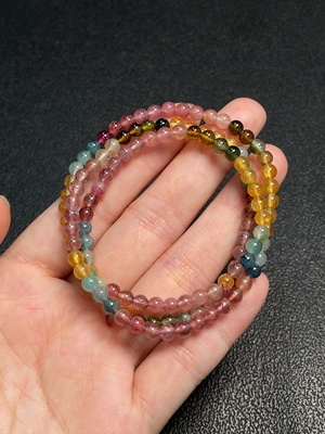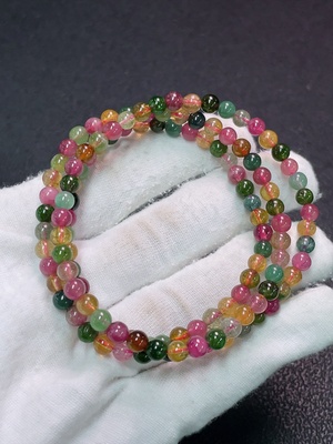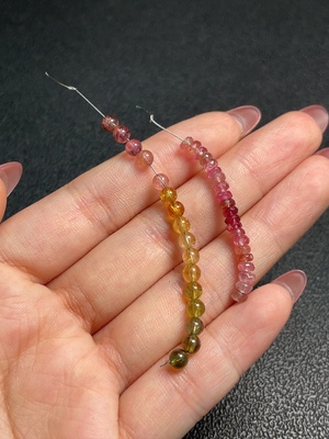 C35121073 Tourmaline bead strand with visible organic matter, only red+green+yellow, possible non-natural accent stones, total weight approx. 14.5g, size approx. 4.4mm (with impurities)