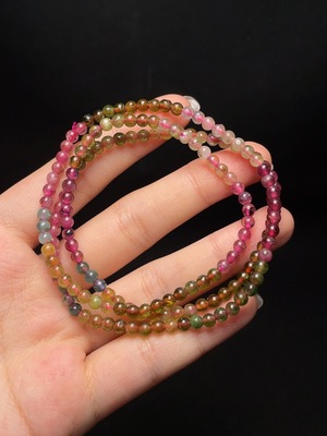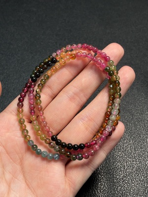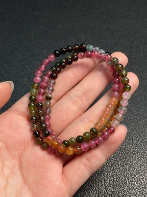 C37409853 Tourmaline bead bracelet with visible organic inclusions, total weight approximately 17.30g, bead size about 4.5mm