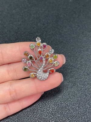 C37385274 Tourmaline Pendant with Non-Natural Accent Stones, Non-Gold, Total Weight Approx. 5.7g