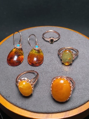 C35144999 Amber Beeswax + Tourmaline Jewelry Non-Gold Adjustable Total Weight Approx. 15.7g Sell as a Lot