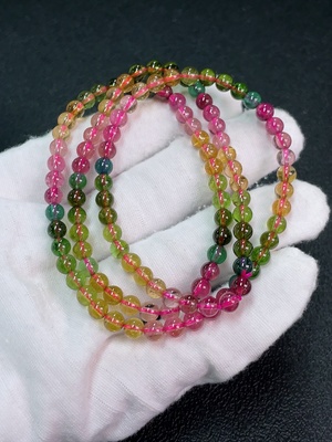 C32712573 Tourmaline Bead Strand with Visible Organic Inclusions, Total Weight Approx. 15.49g, Size About 4.2mm