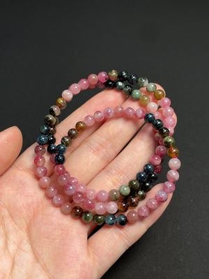 C37409853 Tourmaline bead bracelet with visible organic inclusions, total weight approximately 17.30g, bead size about 4.5mm