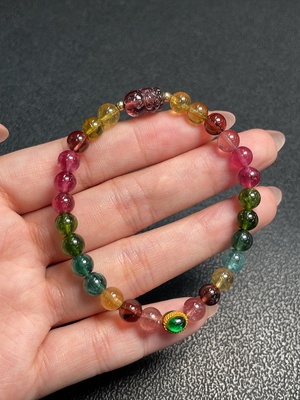 C33853848 Tourmaline Bracelet with Visible Organic Matter, Possible Non-Natural Accent Stones, 36% Gold Content in Beads (Remaining Suspected Gold-Plated), Total Weight Approx. 11.41g, Size ~6.2mm