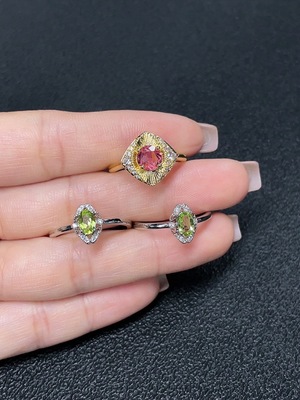 C40684145 Tourmaline and Peridot Inlaid Ring (Non-Gold Setting, Adjustable, Total Weight Approximately 5.02g)