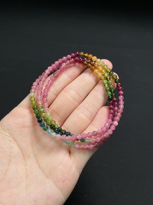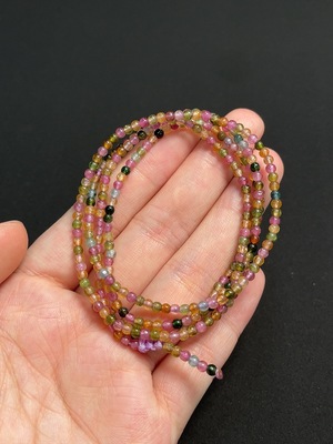 C36228305 Tourmaline Bracelet with Jadeite, Containing Other Mineral Components, Visible Organic Matter, Total Weight Approximately 3.45g, Size Around 3mm