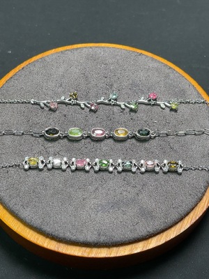 C27099726 Tourmaline Inlaid Bracelet Non-Gold Setting Total Weight Approx. 4.68g