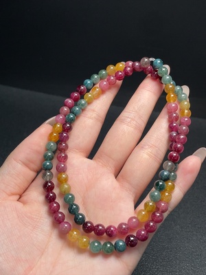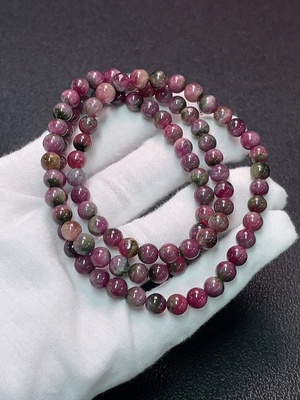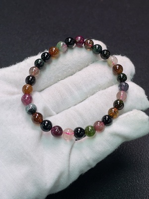 C35183449 Tourmaline bracelet containing other mineral components with visible organic matter, total weight approximately 11.4g, size about 6.6mm