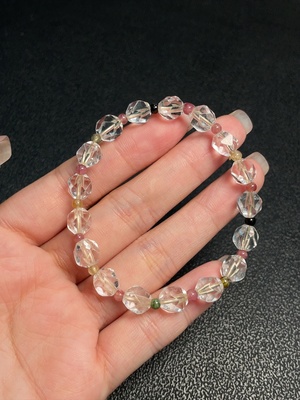 C35153918 Crystal and Tourmaline Bracelet with Visible Organic Matter, Total Weight Approx. 10.36g, Size About 7.3mm