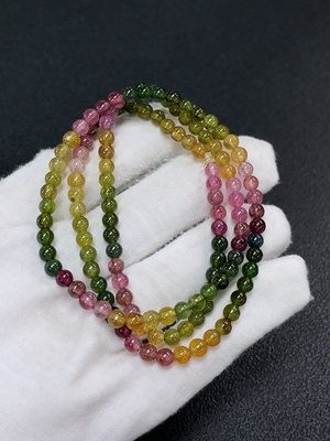 C37372545 Tourmaline Bead Strand with Visible Organic Matter, Total Weight Approx. 19.33g, Size About 4.7mm