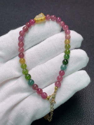 C34950474 Tourmaline Bracelet Non-Gold Containing Other Mineral Components Visible Organic Matter Total Weight Approx. 7.88g Size About 5mm