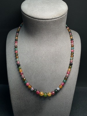 C36303585 Tourmaline bead necklace with other mineral components, visible organic matter, total weight approx. 18.56g, bead size approx. 4.5mm