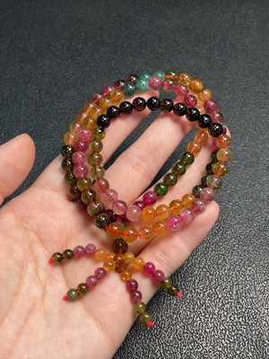C38499519 Tourmaline bead strand with visible organic matter, total weight approximately 17.68g, bead size about 3.5mm