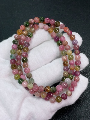 C36323123 Tourmaline Bead Strand with Visible Organic Matter, Total Weight Approximately 10.51g, Size About 4.9mm