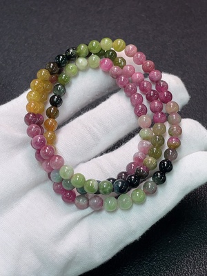 C36229364 Tourmaline bead strand containing other mineral components with visible organic matter, total weight approx. 16.24g, size about 4.3mm