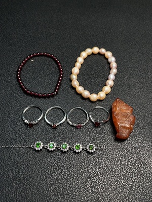 C32784059 Pearl + Amber + Tourmaline + Garnet + Diopside Jewelry Non-Gold Total Weight Approx. 36.56g Sell as a Lot
