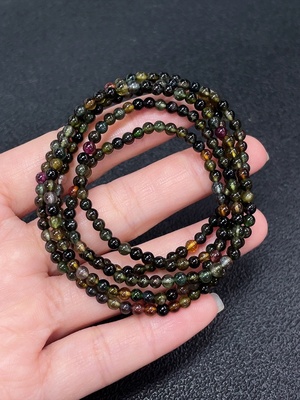 C37367588 Tourmaline bead bracelet containing other mineral components with visible organic matter, total weight approximately 14.49g, bead size about 4.1mm