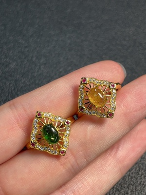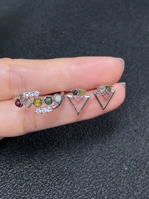 C34037963 Tourmaline Earrings + Ring Adjustable Non-Gold With Other Mineral Components Total Weight Approx. 3.08g Sell as a Lot