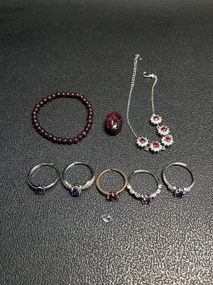 C32815673 Crystal + Garnet + Tanzanite Jewelry Non-Gold Total Weight Approx. 21.42g Sell as a Lot