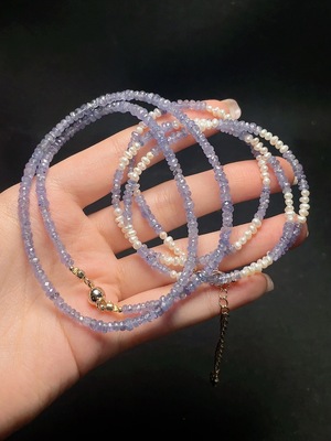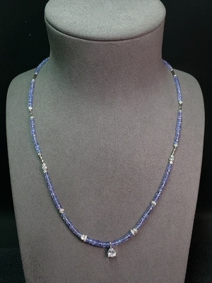 C36274503 Tanzanite Beaded Necklace with Visible Organic Matter, Non-Gold, Total Weight Approx. 8.73g, Size ~2.6mm