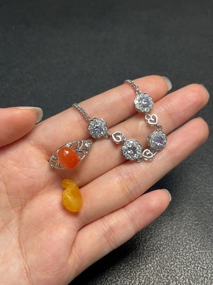 C36303279 Tanzanite + Southern Red Agate with Visible Organic Matter + Amber Coated with Colorless Film Jewelry, Non-Gold, Total Weight Approximately 8.48g, Sell as a Lot